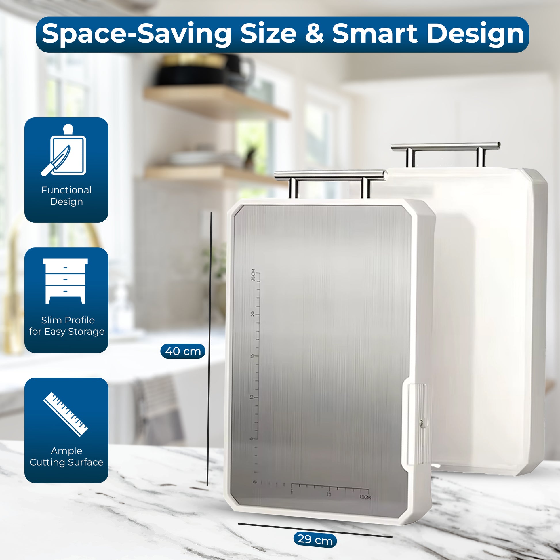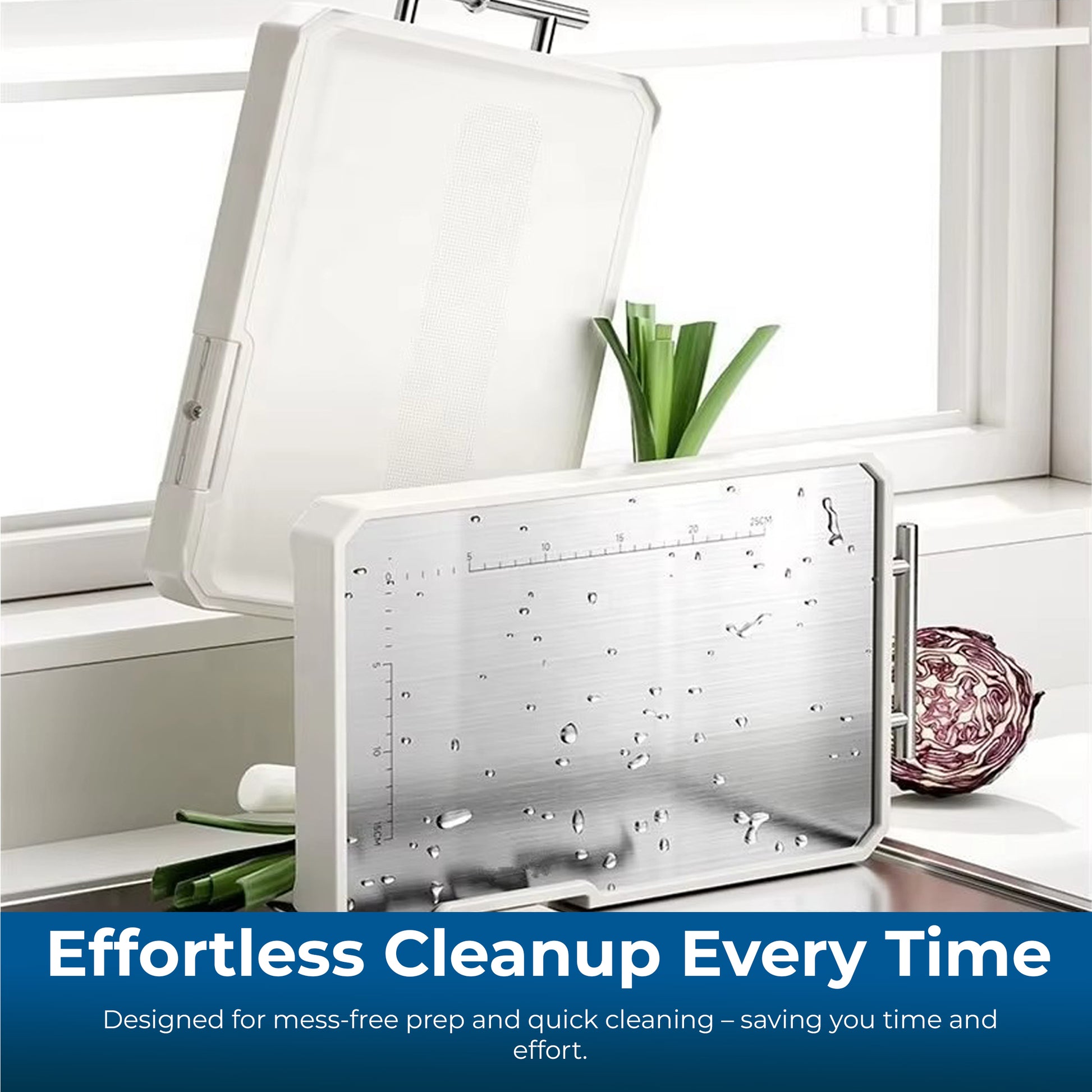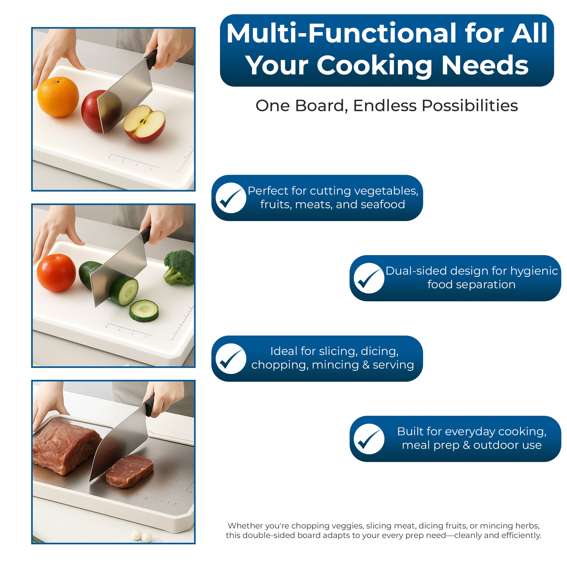 - Innovative Double-Sided Design – Premium stainless steel surface resists stains and odors, while the wheat straw composite side is gentle on knives, making it a versatile cutting board for all foods.