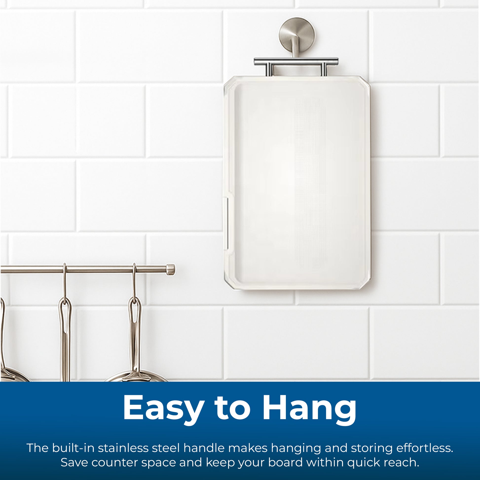 - Convenient Handle & Modern Style – Lightweight with an easy-carry handle for storage or hanging; sleek white frame complements any kitchen décor while delivering practical functionality.